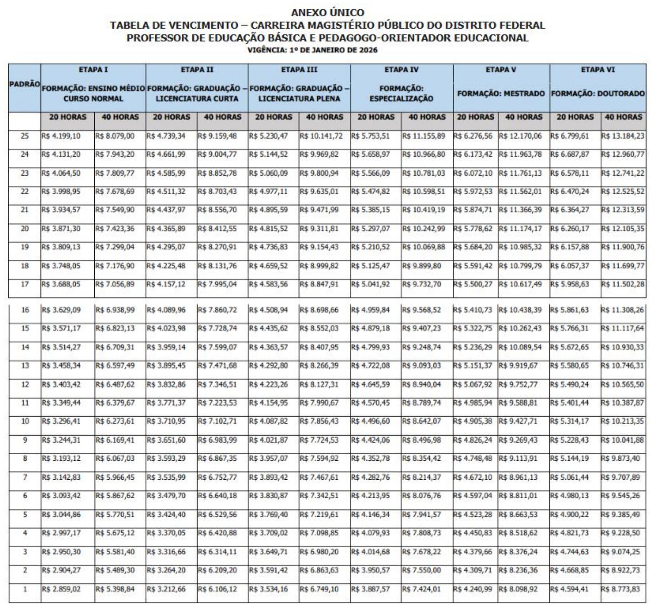 "Art. 17-A. As tabelas de vencimentos básicos das Etapas IV, V e VI, de que tratam o inciso I do artigo 17, correspondentes às habilitações de especialização, mestrado e doutorado, respeitam, respectivamente, os percentuais de 10%, 20% e 30% em relação à tabela base de graduação (Etapa III)."